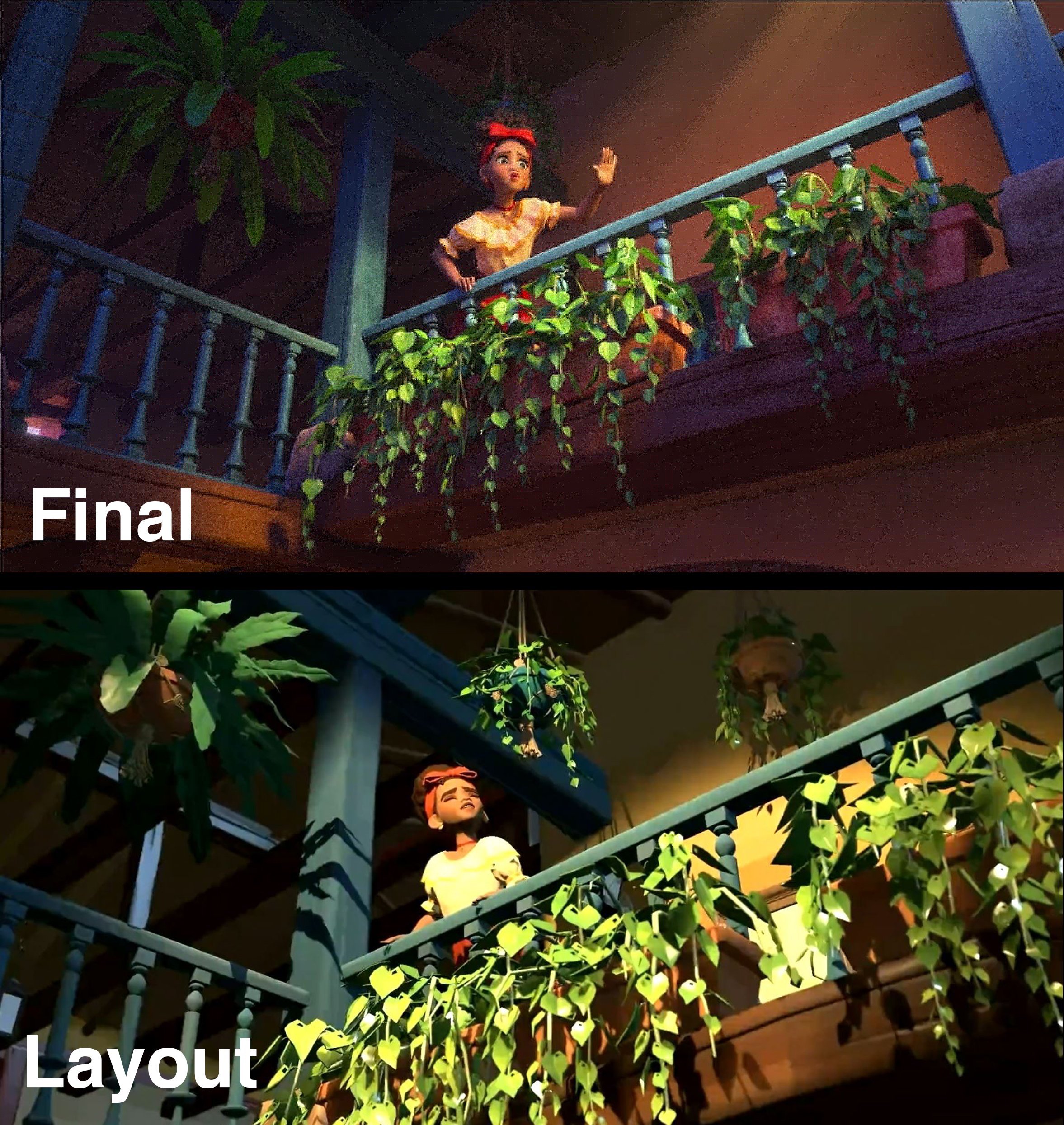 A collection of stills showing a side by side comparison of my work to the final shot.